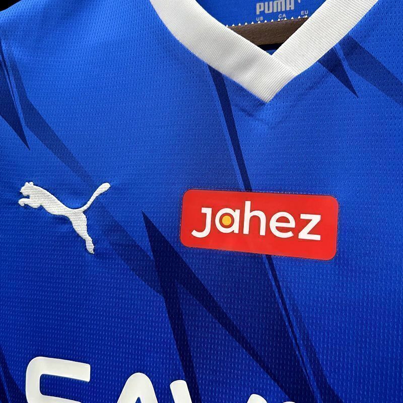 A camisa tradicional do Al Hilal para a temporada 23/24 é uma homenagem à história e à tradição do clube saudita. Apresentando um design elegante e clássico, esta camisa é predominantemente azul, com detalhes em branco que adicionam contraste e sofisticação. O escudo do Al Hilal está em destaque no peito, simbolizando o orgulho e a identidade do clube. Detalhes cuidadosamente trabalhados completam o visual, tornando esta camisa uma escolha perfeita para os torcedores demonstrarem seu apoio ao Al Hilal com estilo e elegância.