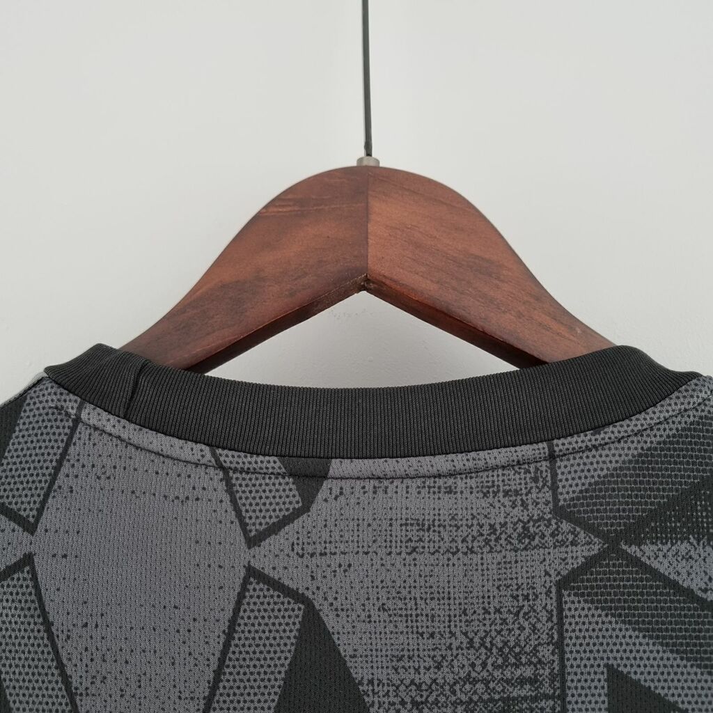 A camisa alternativa do Arsenal 22/23 é uma expressão moderna e arrojada do espírito do clube, destacando-se pelo escudo de canhão, acabamento inspirado na escultura de concreto e detalhe em bronze. Feita com materiais de alta qualidade, é uma escolha elegante para os torcedores exibirem seu apoio com paixão.