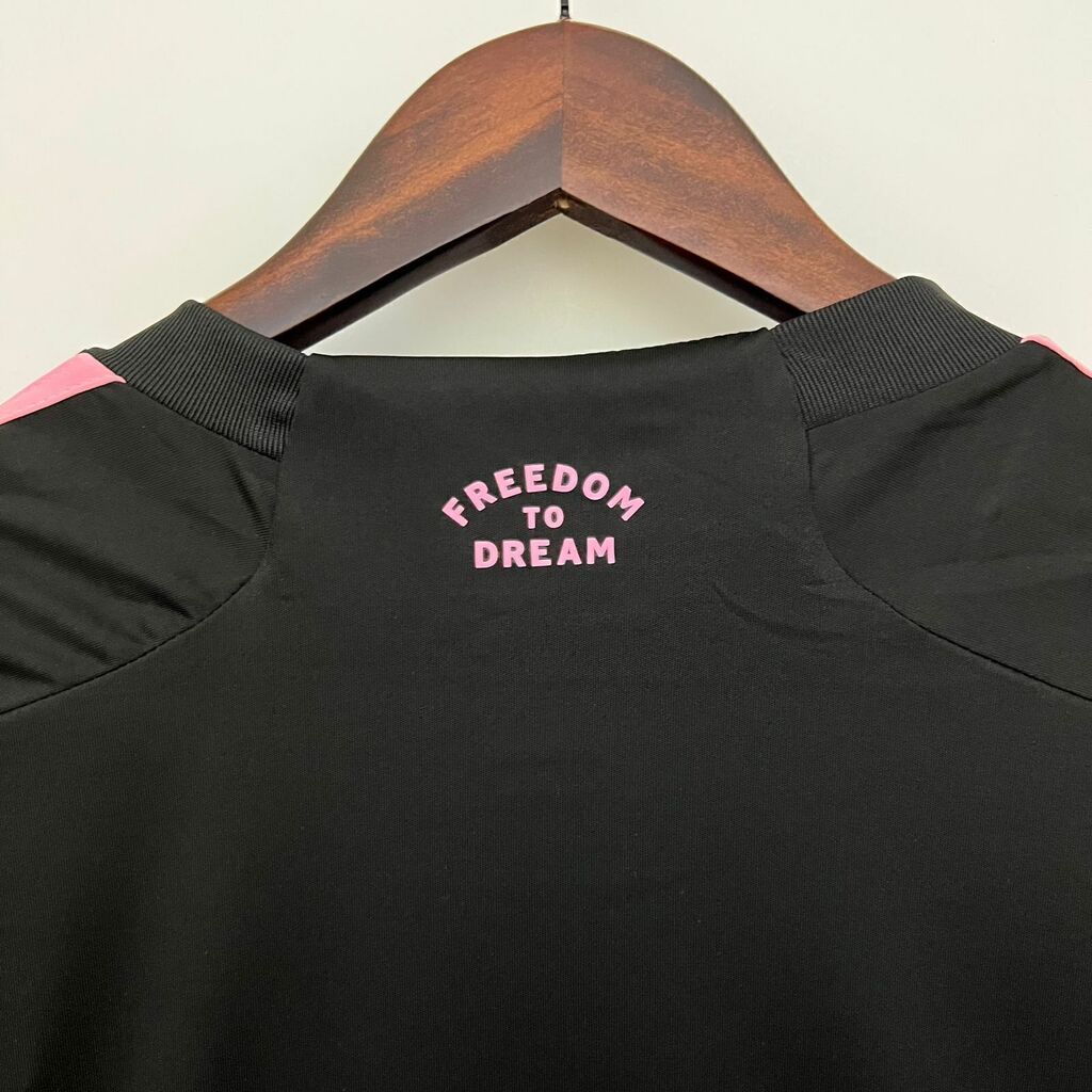 A camisa II do Inter Miami para a temporada 23/24 é uma mistura de estilo moderno e tradição. Com um design elegante e distintivo em tons de rosa e preto, esta camisa representa o espírito vibrante e competitivo do clube.