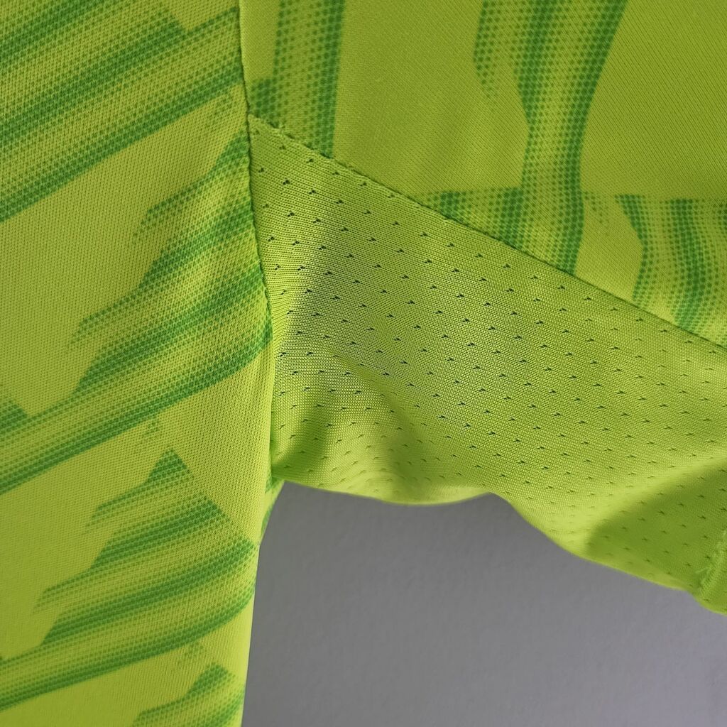 A terceira camisa do Manchester United para a temporada 22/23 é um espetáculo em verde limão, irradiando energia e entusiasmo. Com o icônico escudo do clube em destaque, esta camisa é mais do que um simples uniforme: é um símbolo de paixão e comprometimento dos torcedores. Feita com materiais de alta qualidade, ela oferece conforto e estilo para que os fãs possam expressar seu apoio com confiança e vivacidade.