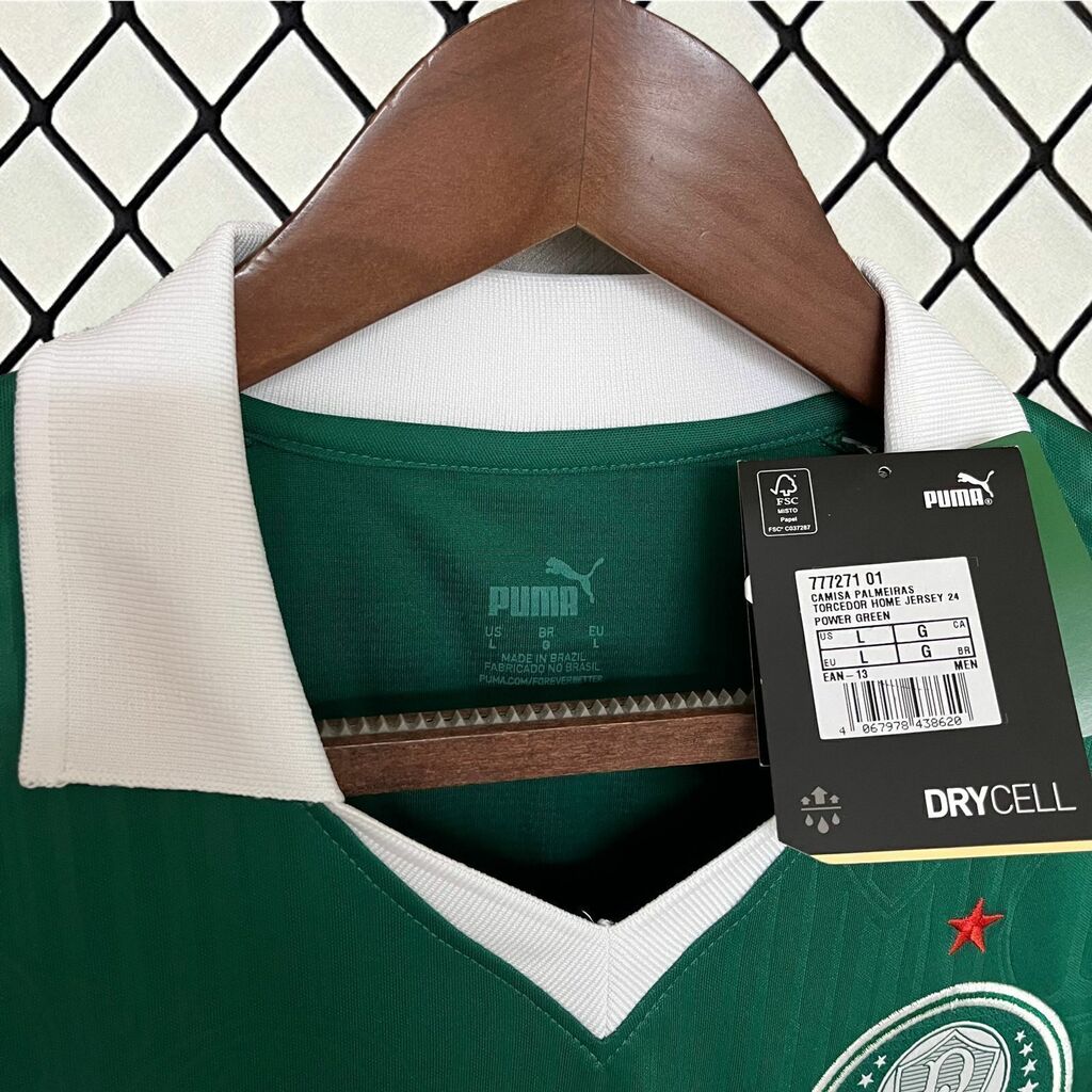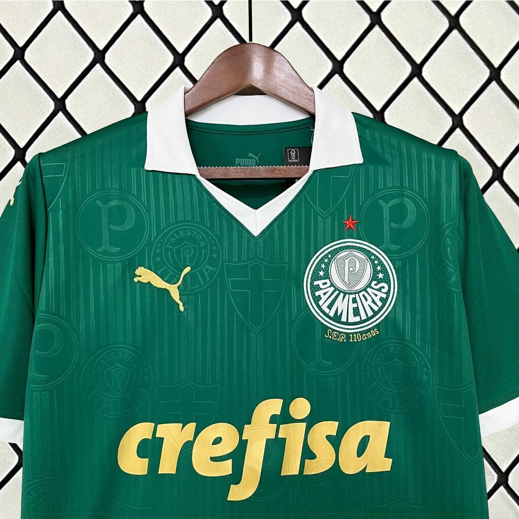 A camisa polo tradicional do Palmeiras para a temporada 24/25 combina elegância e orgulho alviverde. Em verde característico do clube, esta peça é adornada com detalhes em alto relevo, incluindo o símbolo do Palmeiras, proporcionando um toque de distinção. Os patrocínios em dourado adicionam sofisticação ao design. Ideal para os torcedores que desejam exibir sua paixão pelo Verdão com estilo e classe.