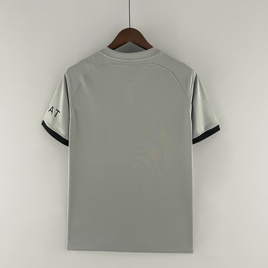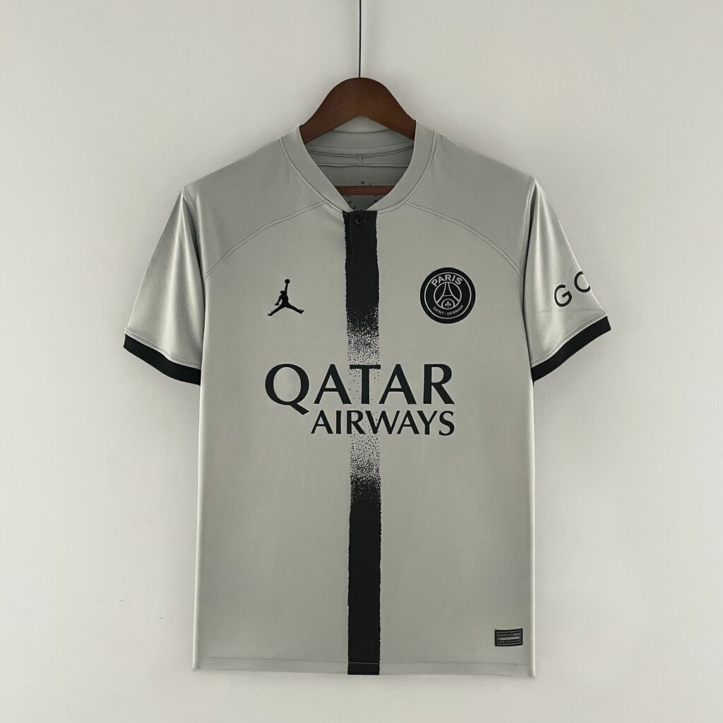 terceira camisa do Paris Saint-Germain (PSG) para a temporada 22/23 é uma peça marcante que combina elegância e modernidade. Em um distinto tom de cinza, esta camisa apresenta detalhes em preto que adicionam um toque de sofisticação. O escudo do PSG e o logo da Jordan, em destaque no peito, simbolizam a tradição e o prestígio do clube parisiense. Confeccionada com materiais de alta qualidade, oferece conforto e desempenho para os torcedores exibirem seu apoio com estilo e classe.