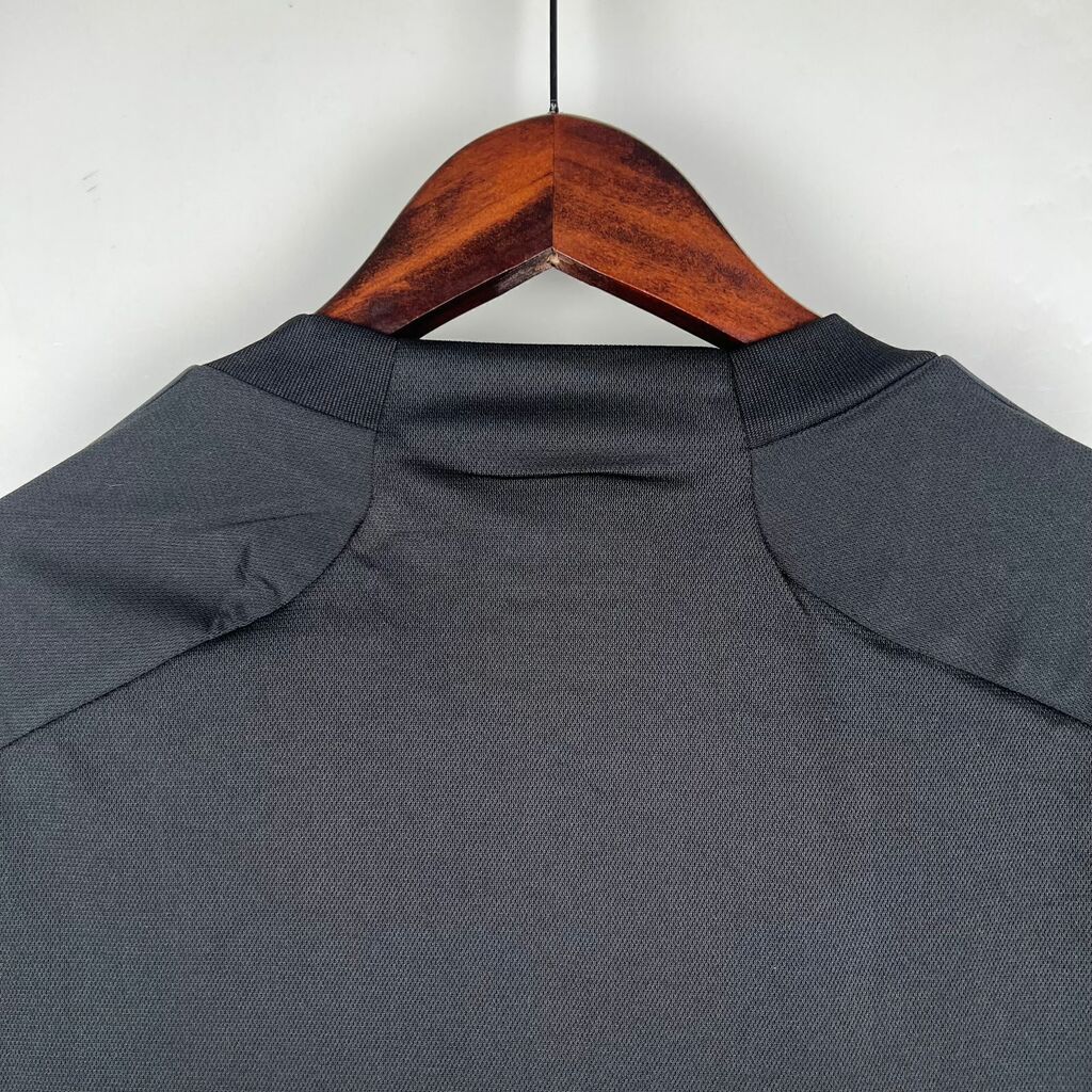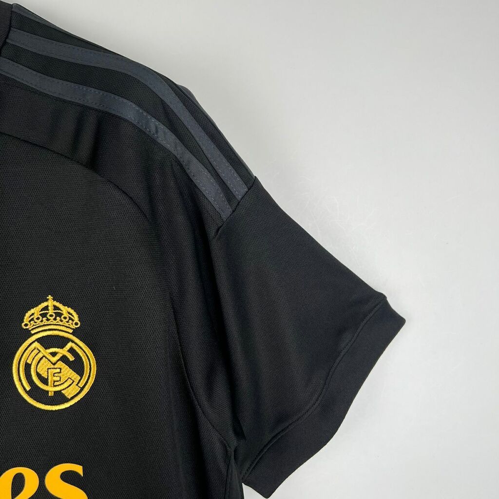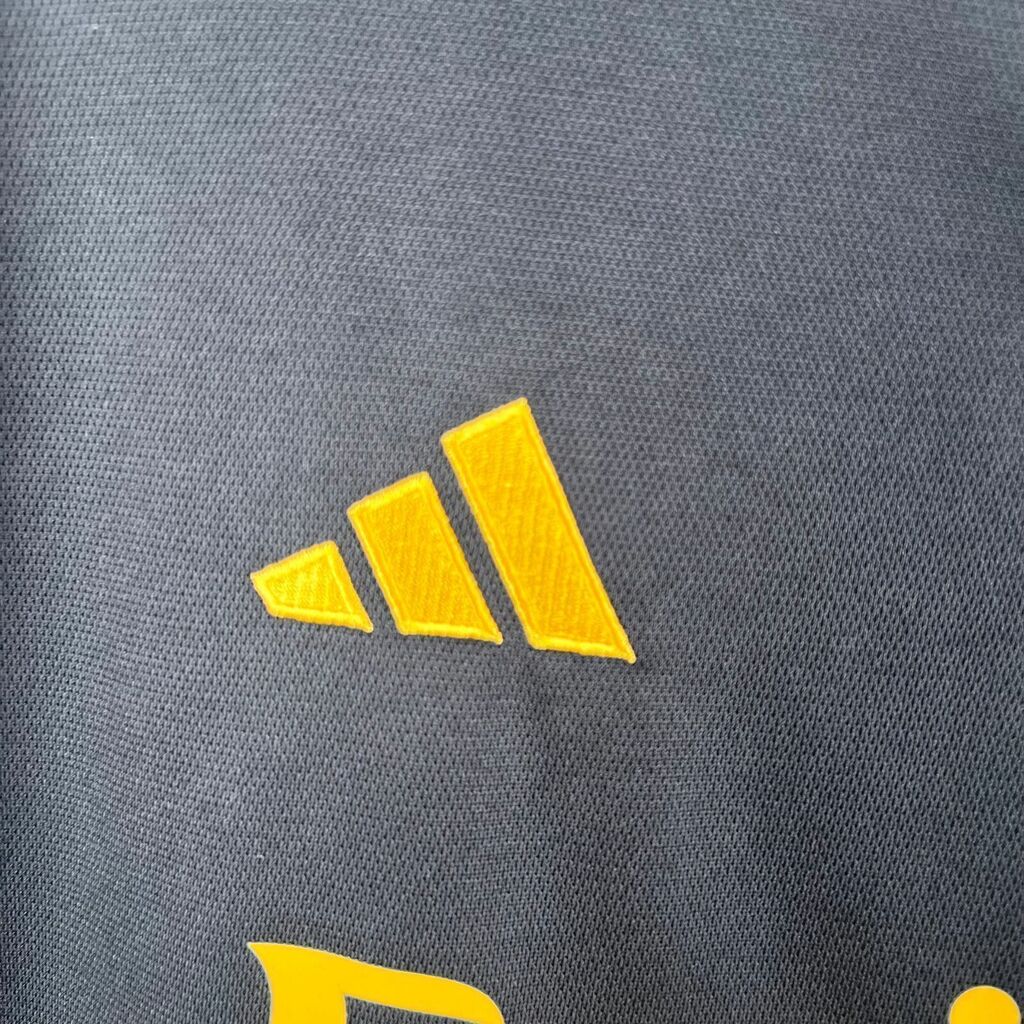 A camisa de terceiro uniforme do Real Madrid para a temporada 23/24 é uma peça marcante que combina estilo e tradição. Com um elegante design em preto, esta camisa destaca-se pela sua sobriedade e sofisticação. Os patrocínios em amarelo adicionam um toque de cor e vivacidade, contrastando com o fundo escuro da camisa. O escudo do Real Madrid, símbolo de glória e prestígio, está em destaque no peito, enquanto detalhes cuidadosamente trabalhados completam o visual, tornando esta camisa uma escolha elegante e distinta para os torcedores mais exigentes.