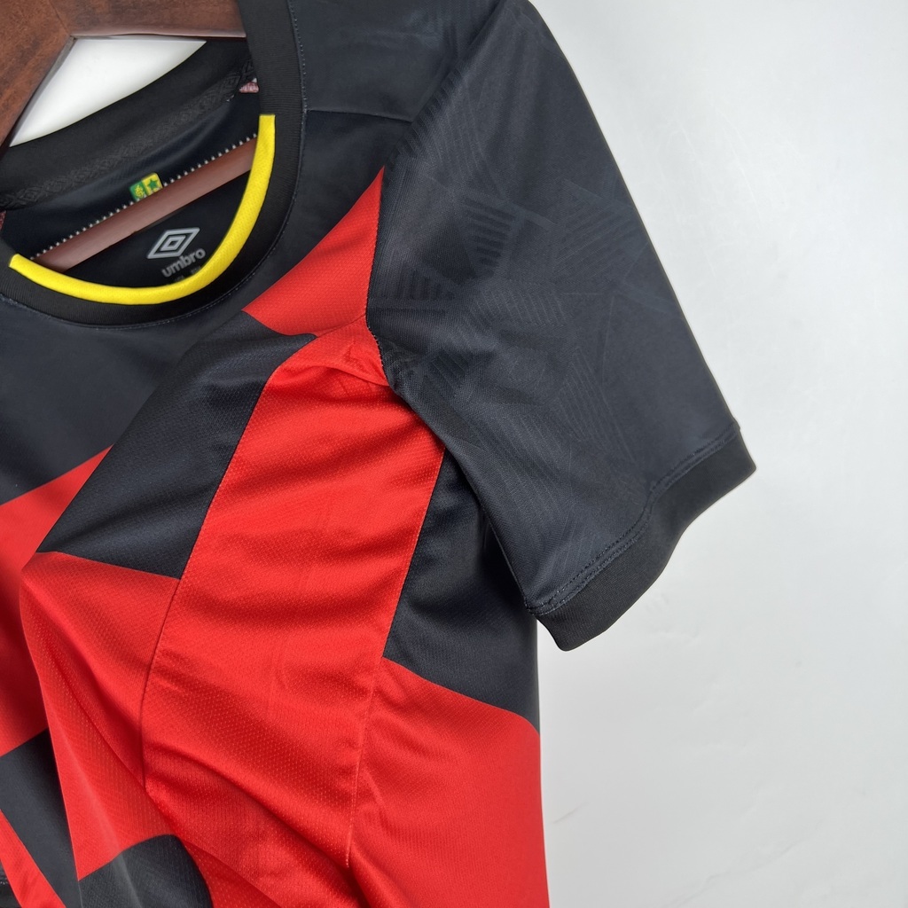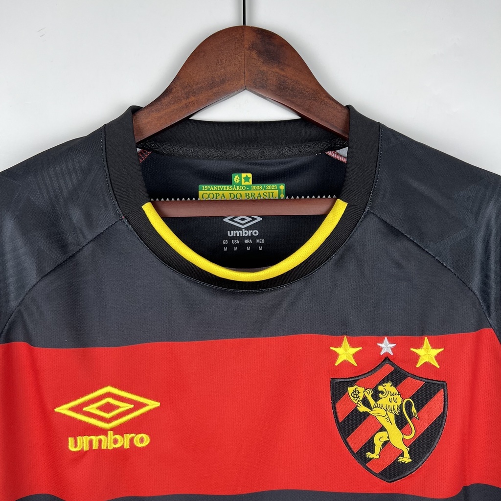 A camisa tradicional rubro-negra do Sport para a temporada 23/24 é uma emocionante homenagem aos 15 anos da histórica conquista do título da Copa do Brasil de 2008. Mantendo o icônico design listrado, esta camisa traz detalhes discretos que evocam a memória daquela jornada lendária, incluindo a inscrição dos anos 2008-2023. Apresentando o escudo do clube em sua forma tradicional, esta camisa não apenas celebra um marco na história do Sport Club do Recife, mas também inspira uma nova geração de torcedores a se orgulharem da tradição e do sucesso do Leão