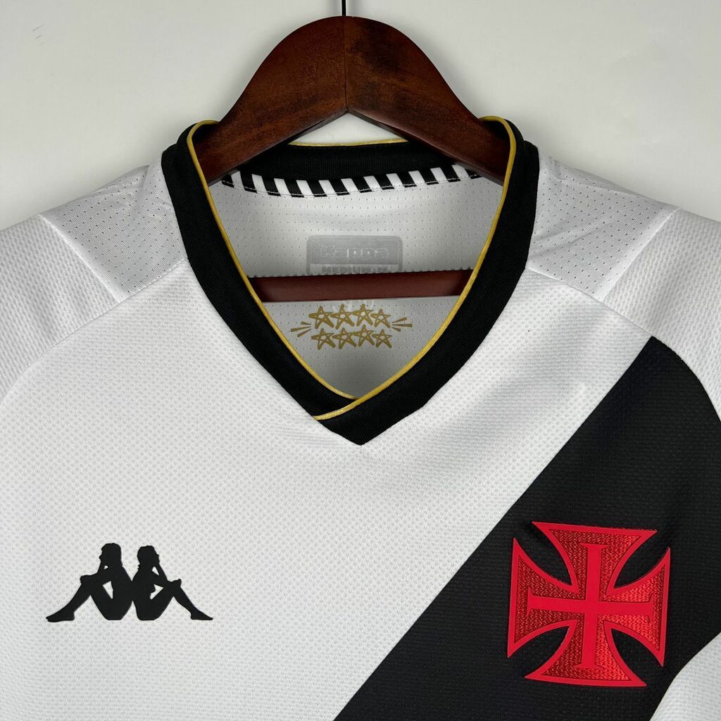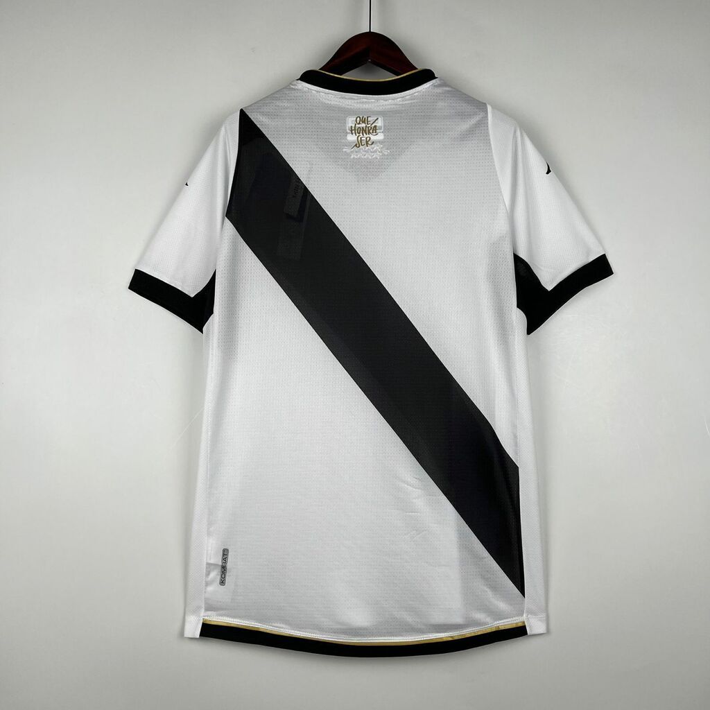A camisa II do Vasco para a temporada 23/24 apresenta um design elegante e minimalista. Predominantemente branca, destaca-se pela presença de uma listra preta que atravessa o peito, representando a tradição e a força do clube. Com o escudo do Vasco em destaque no lado esquerdo do peito, esta camisa é uma escolha clássica e sofisticada para os torcedores que desejam exibir seu apoio com estilo.