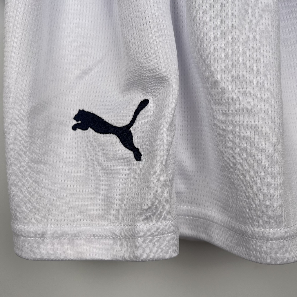 O conjunto infantil tradicional do Manchester City para a temporada 23/24 é predominantemente azul celeste, fiel ao clássico design do clube. Com detalhes brancos e o escudo do Manchester City em destaque no peito, este uniforme é perfeito para os pequenos torcedores. Ele combina estilo e conforto, permitindo que as crianças exibam com orgulho a excelência e a tradição dos Citizens.